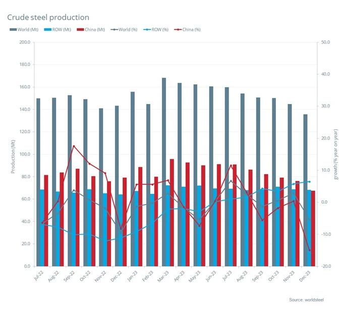 2023年12月及全年全球粗鋼產量