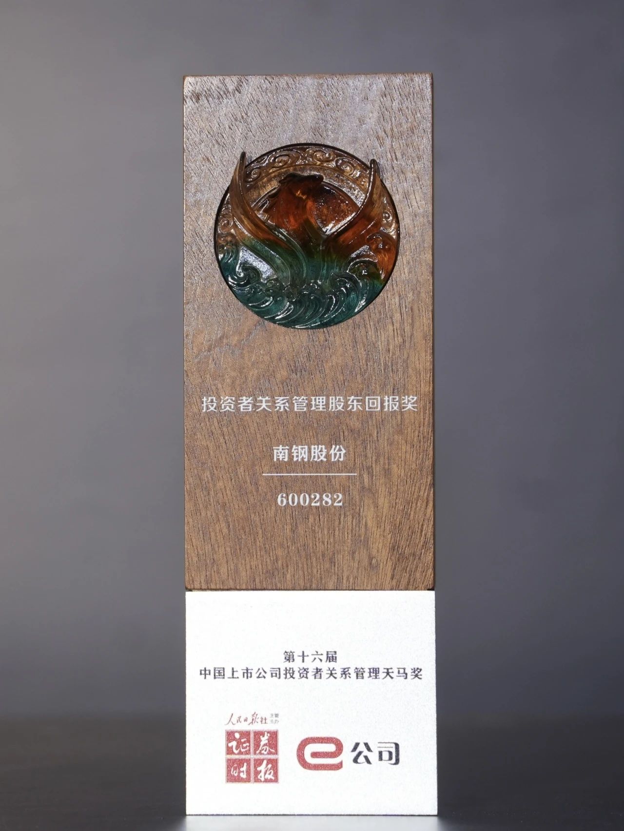 “中國上市公司投資者關(guān)系管理天馬獎(jiǎng)”是綜合評(píng)估上市公司在公司治理、投資者關(guān)系維護(hù)、財(cái)務(wù)質(zhì)量管理、市值管理、投資者回報(bào)、ESG表現(xiàn)等六大關(guān)鍵領(lǐng)域的綜合性獎(jiǎng)項(xiàng)。南鋼股份已經(jīng)連續(xù)兩年獲得該獎(jiǎng)項(xiàng)。