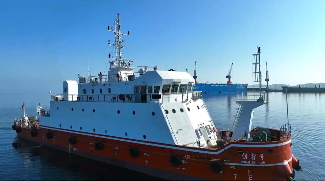 “創智號”試驗船于近日在蓬萊中柏京魯船業有限公司附近海域完成了首次航行試驗。該船總長55米,型寬10米,型深5米,排水量約1500噸,入級中國船級社。該船采用全電力推進形式,配置一體化高效節能推進系統,后續將安裝風力助推轉子、氣層減阻等多種創新節能裝置。另外還具有感知信息融合、自主航行、智能能效等功能。