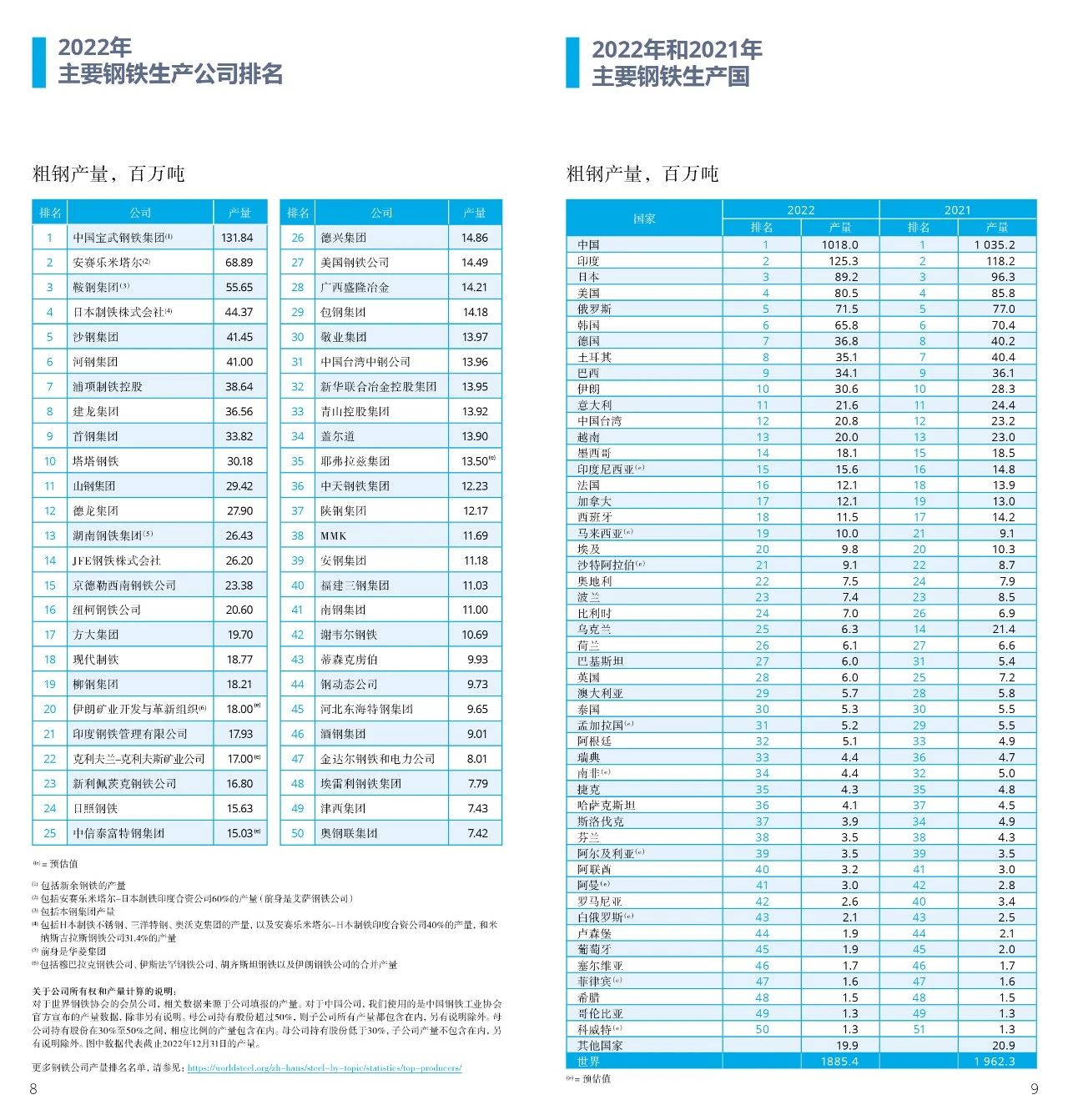 世界鋼鐵協(xié)會(huì)發(fā)布《世界鋼鐵統(tǒng)計(jì)數(shù)據(jù)2023》,該手冊(cè)通過鋼鐵產(chǎn)量、鋼鐵表觀消費(fèi)、全球鋼鐵貿(mào)易量、鐵礦石產(chǎn)量及貿(mào)易量等主要指標(biāo)介紹鋼鐵行業(yè)整體發(fā)展情況。