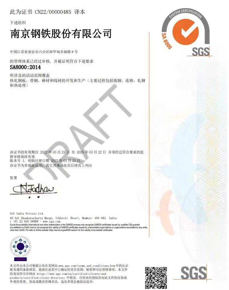 公司對標國際先進,積極踐行社會責任,通過SA8000企業社會責任管理體系認證,也是行業大中華地區率先通過SA8000國際標準體系認證企業。